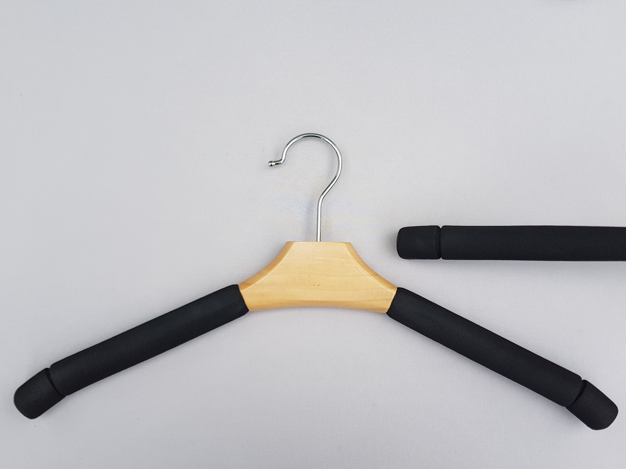 Плічка вішалки тремпеля поролонові чорного кольору з дерев'яною світлої вставкою , довжина 43 см